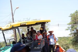 El mandatario estuvo acompañado por el vicepresidente de la República, Pedro Alliana; la primera dama Leticia Ocampos; la ministra de Obras Públicas y Comunicaciones, Ing. Claudia Centurión; el senador nacional Silvio Ovelar; el diputado Juan Manuel del Puerto, además de autoridades locales y departamentales, con quienes recorrió el área de intervención del proyecto.