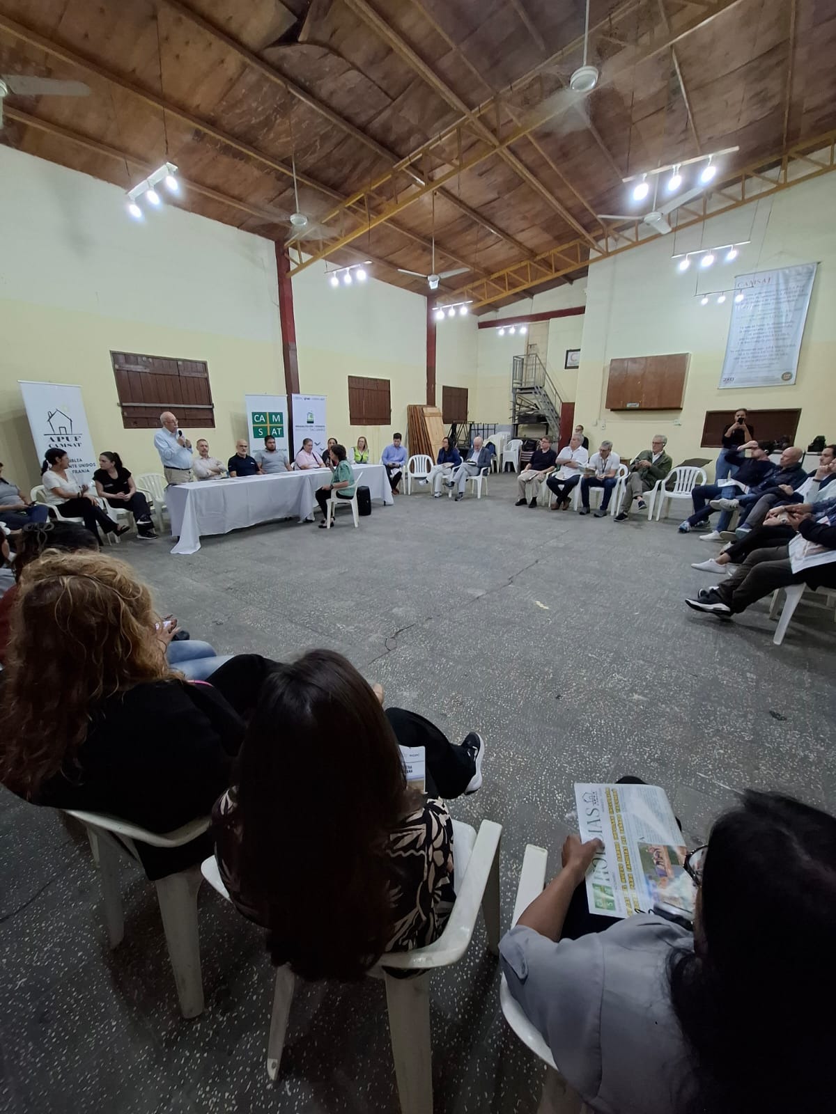 El itinerario incluyó el sector de intervención próximo a la Costanera Sur y una visita a la sede de la organización Centro de Ayuda Mutua Salud para Todos (CAMSAT), actor comunitario que acompaña el proceso de participación social del plan. La comunidad valoró la iniciativa de los directivos del BID de conocer el barrio en un día de intensa lluvia, para que puedan experimentar “un poco” de las necesidades cotidianas de las familias.
