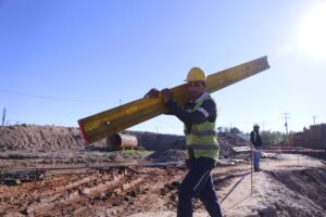 De manera simultánea, continúan los trabajos de movimiento de suelo y conformación de la estructura del pavimento en dos frentes. En uno de ellos ya se alcanzaron las cotas de base y subbase, mientras que en el otro se avanza hasta la subrasante, etapa previa a la conformación de la cama estructural.