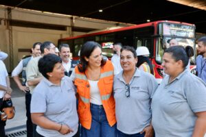 “Estamos en una operación transitoria con la nueva línea de buses eléctricos que sale de San Lorenzo y va hasta el centro de Asunción por la avenida Mariscal López con más servicio a disposición de la ciudadanía”, manifestó la ministra de MOPC, Ing. Claudia Centurión.
