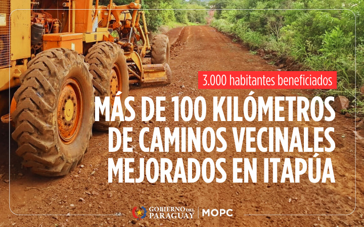 Una mejor transitabilidad, mayor seguridad en el traslado diario y mejores condiciones para la producción y el acceso a servicios básicos son algunos de los resultados alcanzados en caminos vecinales del departamento de Itapúa por el Ministerio de Obras Públicas y Comunicaciones (MOPC), donde se intervinieron 106 kilómetros para beneficiar a casi 3.000 habitantes.