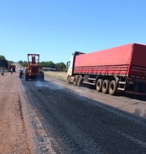 Las labores se desarrollan en la zona de Naranjito, a la altura del km 150, a cargo del equipo de la planta asfáltica de La Paz, dependiente del MOPC. Estas tareas de mantenimiento permiten restablecer las condiciones de circulación y garantizar una superficie más segura y confortable para los conductores.