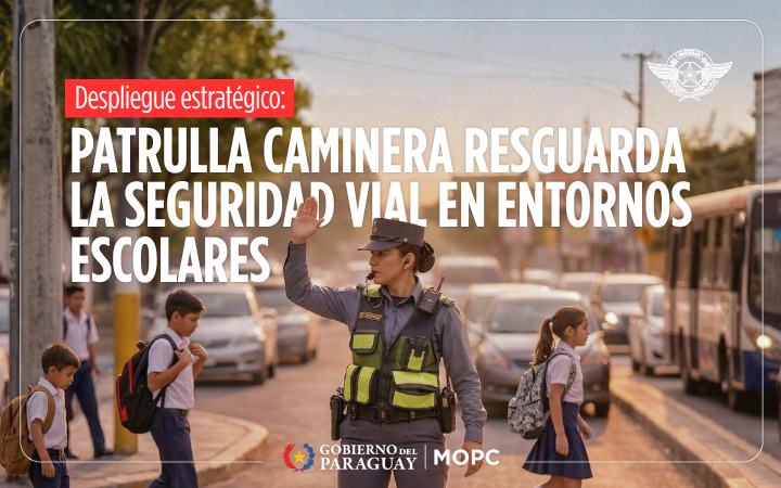 Con el objetivo de resguardar la seguridad vial y garantizar el cruce seguro de los estudiantes, la Dirección Nacional de la Patrulla Caminera, dependiente del Ministerio de Obras Públicas y Comunicaciones (MOPC), lleva a cabo operativos de regulación del tránsito en escuelas y colegios ubicados en zonas de influencia de la red vial nacional.