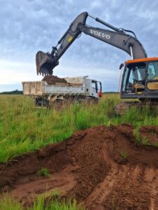 Las tareas incluyeron la recuperación del tramo Yaguarón–Duarte Cué–Tacuara’i, en el distrito de Tacuaras, mediante perfilado de plataforma, cuneteada, bacheo, taipeadas, carga y alteo de calzada, con el objetivo de rehabilitar este importante camino afectado por las lluvias recientes.