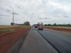 En Alto Paraná, las obras de pavimentación de la ruta PY21, que conecta el Empalme Supercarretera Itaipú (ruta PY07) con Puerto Indio, avanzan con ritmo sostenido, con el Lote 2 cercano al 60% de ejecución. En total, son más de 60 kilómetros de nueva carretera (lotes 1 y 2) que beneficiará a unas 150.000 personas de la región.