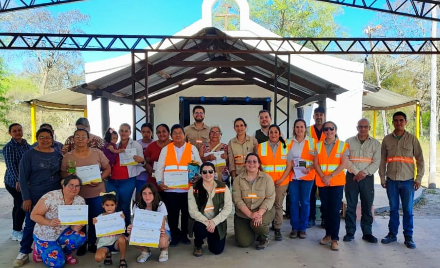Con entusiasmo y participación activa, pobladores de la comunidad de Cabo Oliborio Talavera (ex Ninfa) fueron protagonistas de una jornada de capacitación en seguridad y cuidado ambiental, desarrollada como parte del proyecto de habilitación y mantenimiento de la ruta PY12.