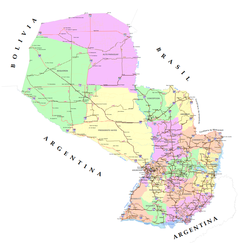 Mapa Vial del Paraguay alta definición